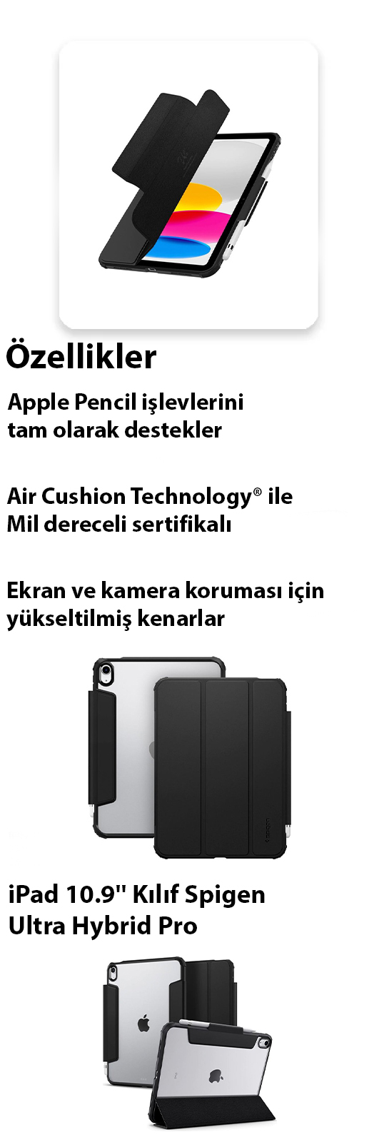 iPad 11" (2025) / 10.9'' 10.nesil (2022) Kılıf, Spigen Ultra Hybrid Pro