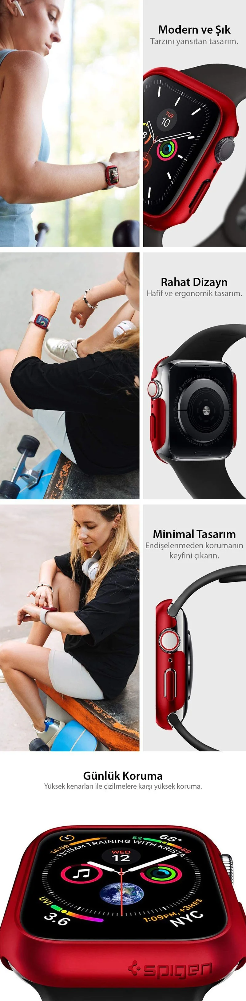Spigen Apple Watch Seri SE 2/6/SE/5/4 (40mm) ile Uyumlu Kılıf Thin Fit Malzeme: Polikarbonat ● Hassas kesimler ve dokunsal düğmeler, hızlı erişim ve geri bildirim sağlar ● Günlük kullanım için ince ve kolay tutuş ● Benzersiz tasarım ve olağanüstü görünüm ● Çizilme ve darbelere karşı güçlü koruma