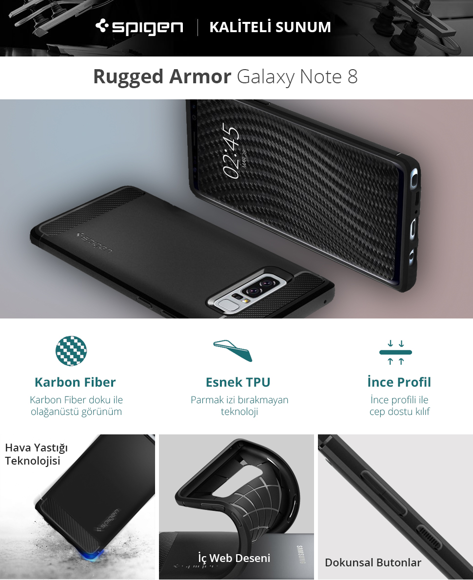Spigen Samsung Galaxy Note 8 Kılıf Rugged Armor - 587CS22061Spigen Rugged Armor™kılıfı Galaxy Note 8 için yeni tasarlandı,