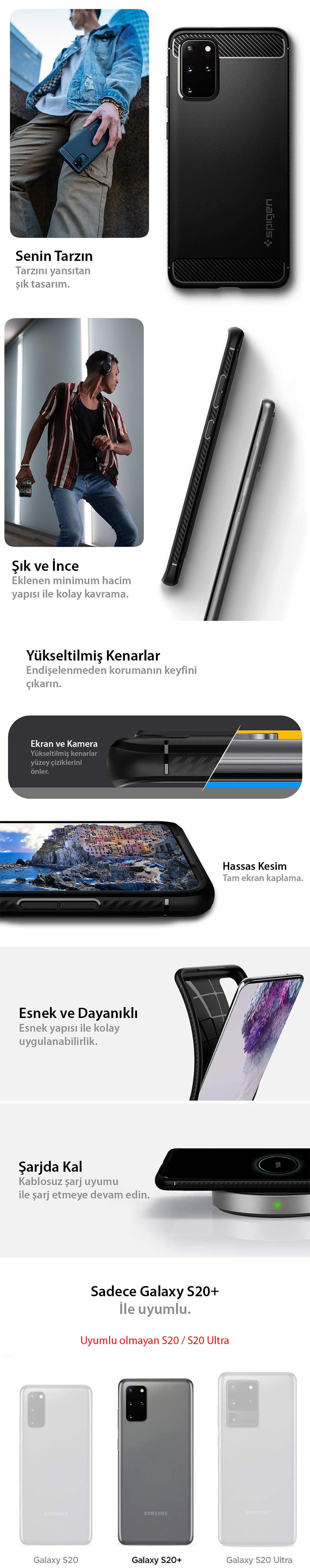 Spigen Samsung Galaxy S20 Plus Kılıf Rugged Armor Matte Black - ACS00753Galaxy S20 Plus Kılıf, Spigen Rugged Armor