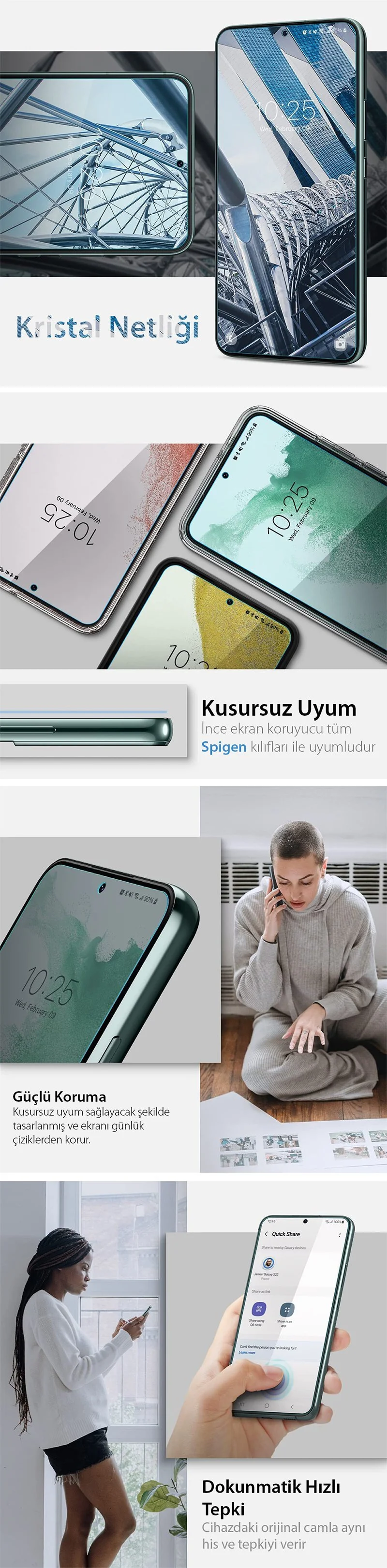 Galaxy S22 Plus Cam Ekran Koruyucu, Spigen GLAS.tR Slim HD (1 Adet) ● En kaliteli Spigen® Steinheil Real HD Cam kristal cam ● Ekran kırılmasına, düşmelere, çizilmelere veya darbelere karşı kırılmaz koruma ● Kavisli kenarlar kırpıntıları ve keskin kenarları önler. ● Oleofobik kaplama lekeleri ve parmak izlerini önler. ● Kristal netlik, ekranın keskinliğini korur.