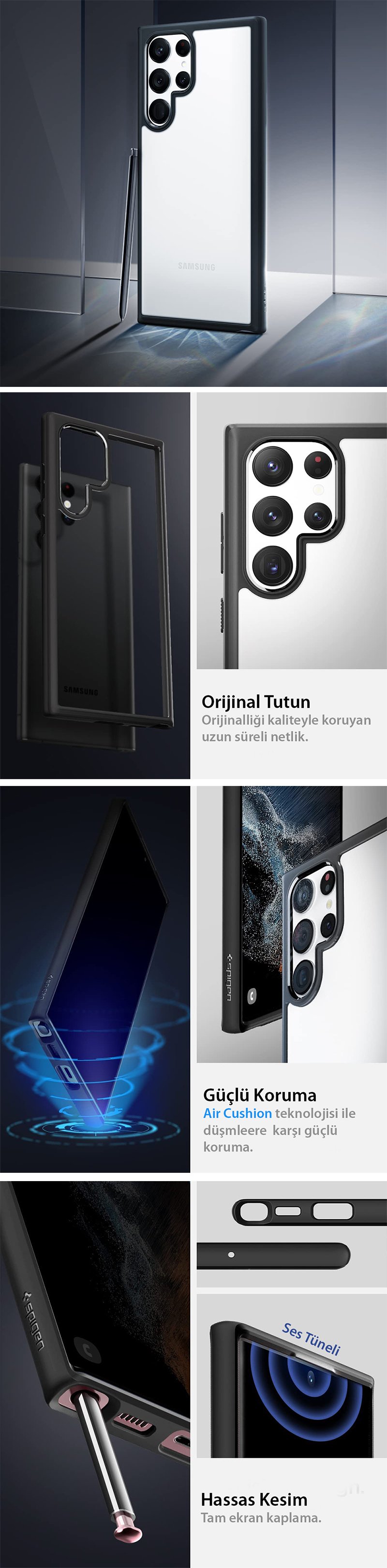 Spigen Samsung Galaxy S22 Ultra 5G ile Uyumlu Kılıf Ultra Hybrid Matte Black - ACS03919