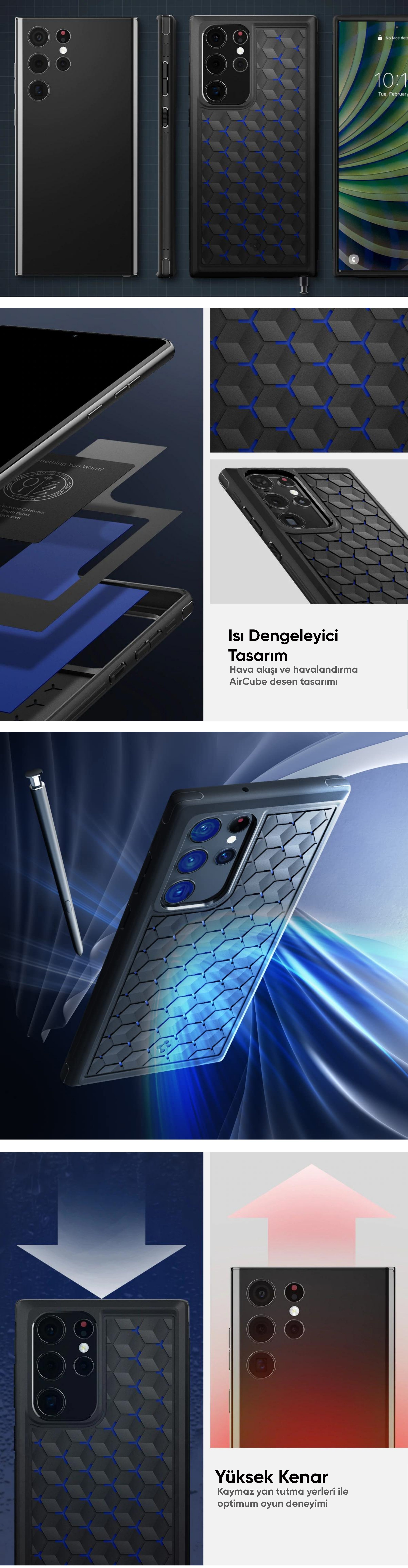 Spigen Samsung Galaxy S22 Ultra 5G ile Uyumlu Kılıf Cryo Armor Matte Black - ACS03917