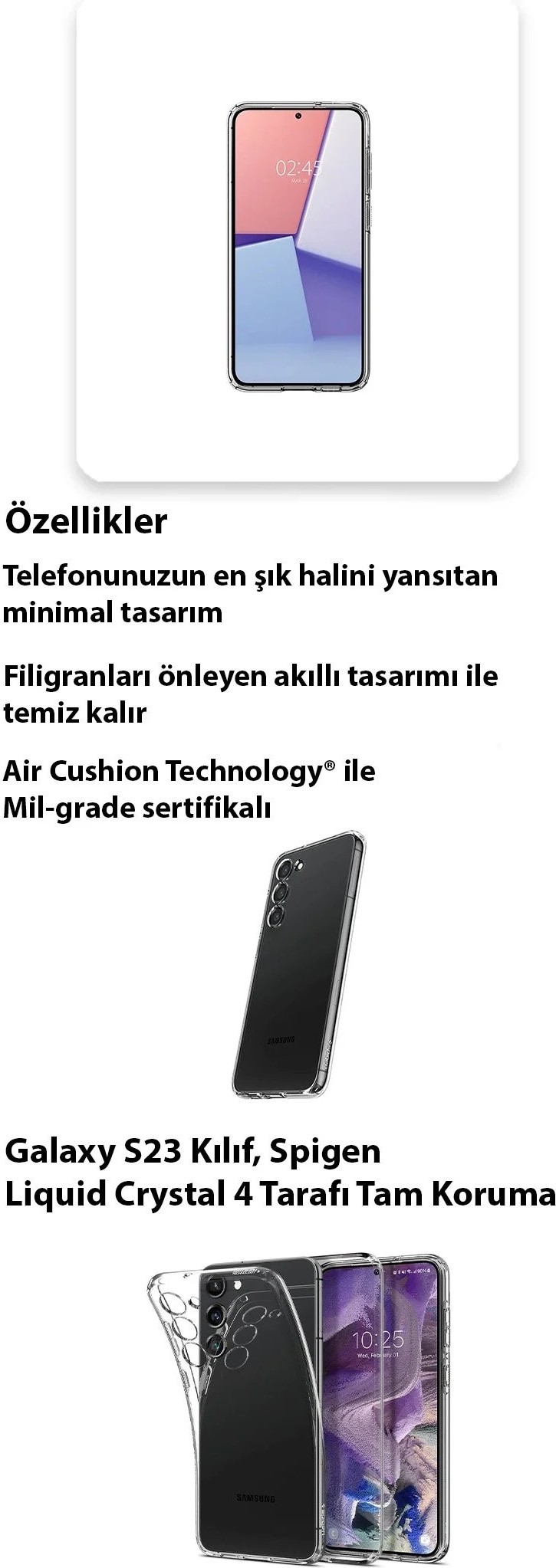 Galaxy S23 Kılıf, Spigen Liquid Crystal 4 Tarafı Tam Koruma