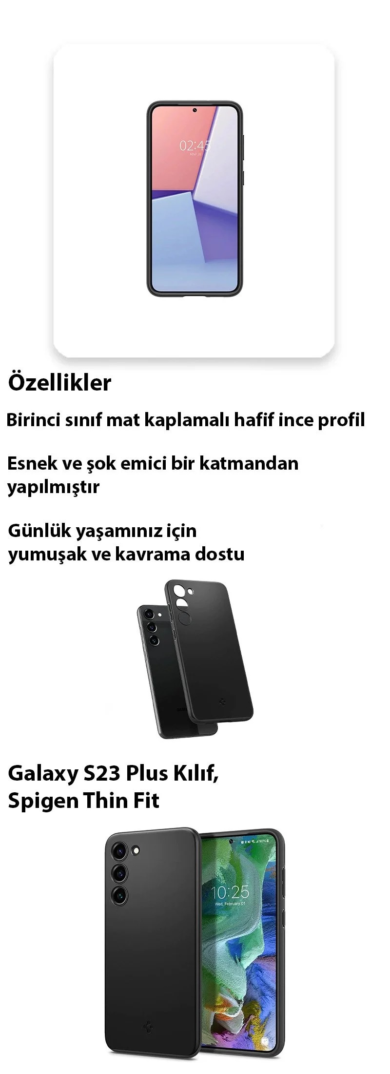 Spigen Samsung Galaxy S23 Plus ile Uyumlu Kılıf Thin Fit Black - ACS05661