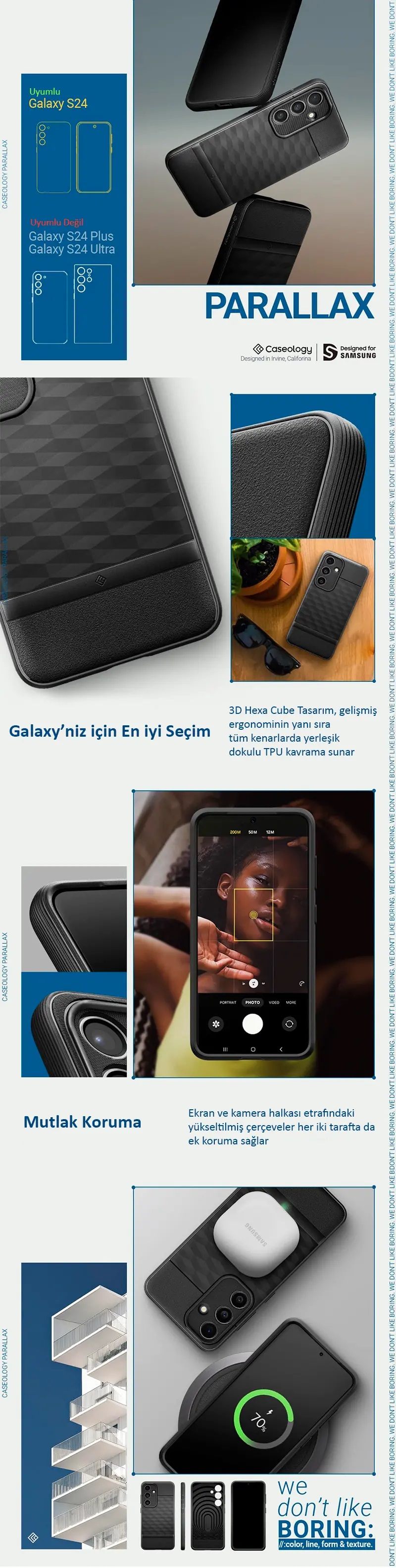 Galaxy S24 Kılıf, Caseology Parallax Parallax'ın hayranların favorisi olmasının bir nedeni var. İkonik ve yenilikçi tasarımı; şık renkleri, ergonomik dokunuşu ve geometrik desenleri bir araya getirerek size görsel bir şölen sunuyor. Askeri Sınıf Sertifikalı yapısı ile dayanıklı bir yapıya sahip olan Parallax, cihazınız için cesur bir stil ve sağlam koruma sunar. Kameranın etrafındaki ayrıntılar, görsel şıklığının yanı sıra kamera için ek bir koruma katmanı da oluşturur. Yan kısımlara yerleştirilen TPU tutma yerleri, hareket halindeyken cihazınızın kaymasını önler ve güvenli bir kullanış sunar. Tıpkı sizin gibi etkileyici ve modern; Parallax, gittiğiniz her yerde dikkatleri üzerine çekecek. [Samsung için tasarlandı] Caseology Samsung'un Resmi Ortağı 3D Hexa Cube Tasarım, gelişmiş ergonominin yanı sıra tüm kenarlarda yerleşik dokulu TPU kavrama sunar Ekran ve kamera halkası etrafındaki yükseltilmiş çerçeveler her iki tarafta da ek koruma sağlar Galaxy S24 Kılıfınızı tamamlamak için tasarlanmış, iki tonlu renk seçeneği Air Space Teknolojisi ile Sertifikalı Askeri Sınıf koruma Kablosuz şarj ile uyumlu Caseology Parallax Kılıf Samsung Galaxy S24 Kılıf (2024) ile Uyumlu