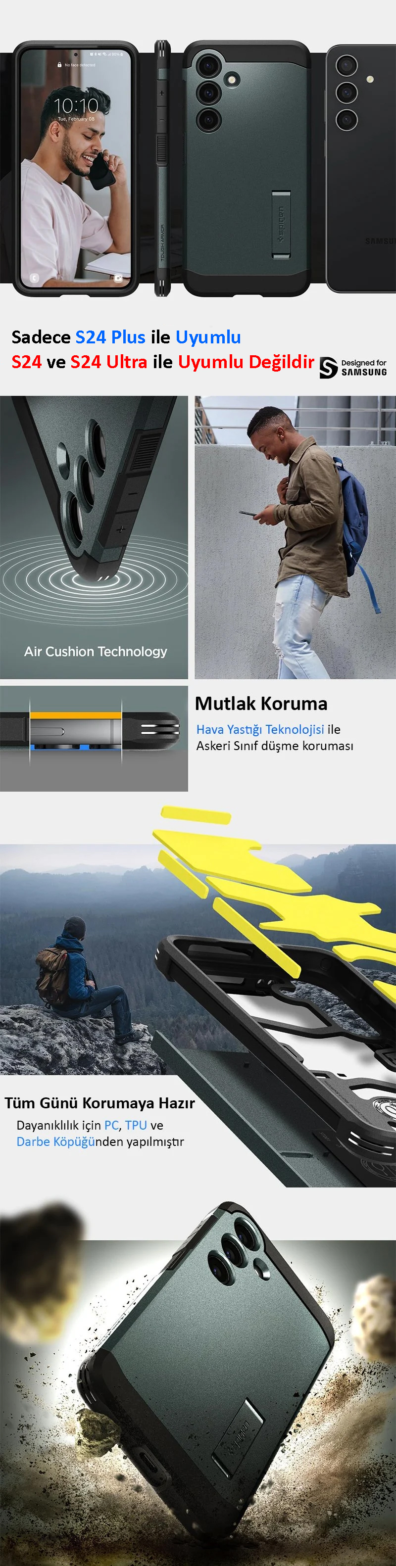 Spigen Samsung Galaxy S24 Plus ile Uyumlu Kılıf Tough Armor Black - ACS07332