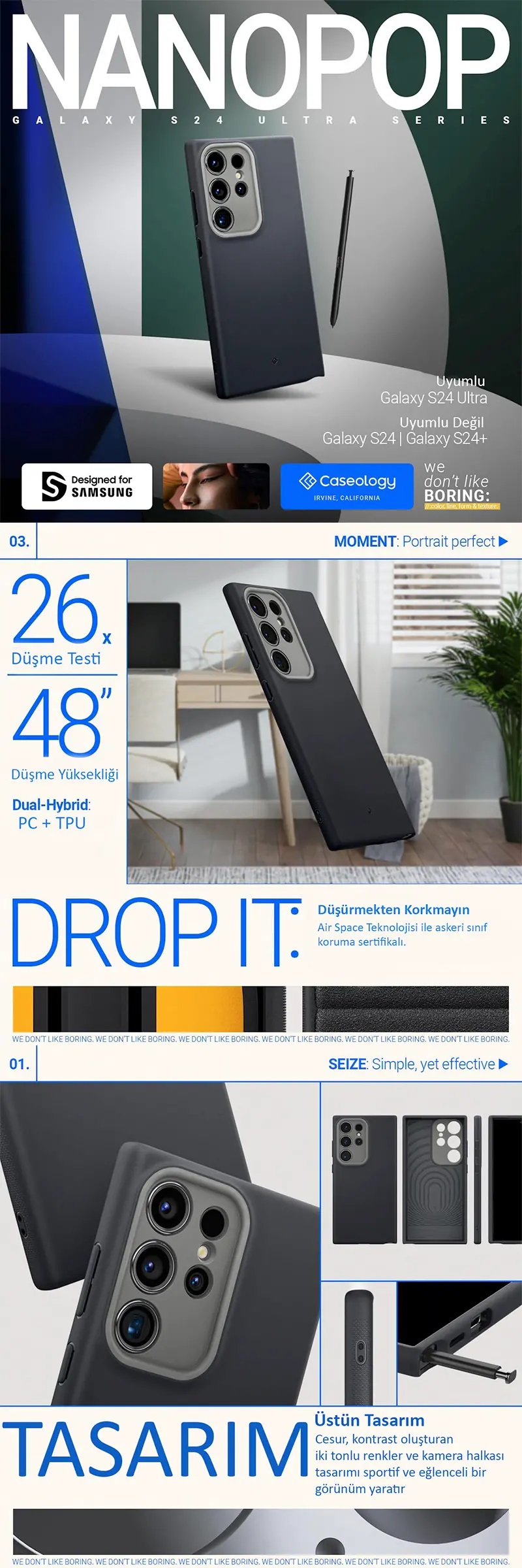 Galaxy S24 Ultra Kılıf, Caseology NanoPop Taze meyvelerin çift tonlu görsellerinden ilham alan Nano Pop, bir o kadar cesur ve taze. Bu Samsung Galaxy S24 Ultra kılıf, canlı kontrastlı iki tonlu renk şemasıyla diğerlerinden ayrılıyor. Sadece iyi görünmenin ötesinde, Nano Pop aynı zamanda Caseology'nin imzası olan patentli Air Space teknolojisini köşelerde içeren düşmeye karşı koruma sağlayan koruyucu bir iç savunma modeliyle yeniden tasarlandı. Nano Pop, rahatınızdan veya Galaxy S24 Ultra'nızın güvenliğinden ödün vermeden kişiliğinizi bir renk patlamasıyla göstermenizin bir yoludur. [Samsung için tasarlandı] Caseology Samsung'un Resmi Ortağıdır Silikon hisli kılıf, ceplerinizde tiftiksiz ve tozsuz kalırken mükemmel tutuş sağlar Cesur, kontrast oluşturan iki tonlu renkler ve kamera halkası tasarımı sportif ve eğlenceli bir görünüm yaratır İnce profili ile tam oturur ve ek koruma için kameranın etrafında yükseltilmiş halka bulunur Air Space Teknolojisi ile Sertifikalı Askeri Sınıf koruma Kablosuz şarj ile uyumlu Caseology Nano Pop Silikon Kılıf Samsung Galaxy S24 Ultra (2024) ile Uyumlu