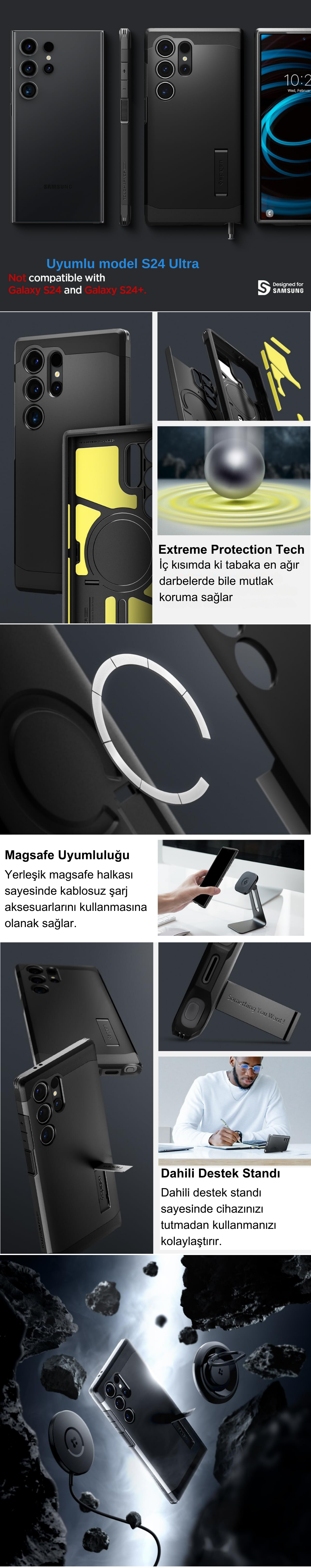 Spigen Samsung Galaxy S24 Ultra ile Uyumlu Kılıf Tough Armor MagFit Black - ACS07303