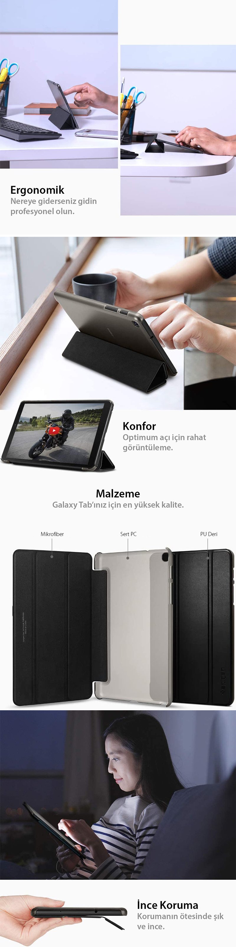 Spigen Samsung Galaxy Tab A 8.0 S Pen (2019) Kılıf Smart Fold Black - ACS00047Galaxy Tab A 8.0 S Pen (2019) Kılıf, Spigen Smart Fold