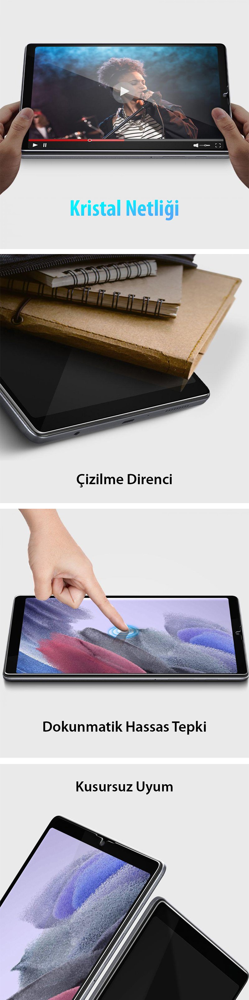 Galaxy Tab A7 Lite Cam Ekran Koruyucu, Spigen GLAS.tR SLIM Malzeme: 9H Temperli Cam ● Oleofobik kaplama sayesinde parmak izi, leke izi tutmaz ● Benzersiz tasarım ve olağanüstü görünüm ● Çizilme ve darbelere karşı güçlü koruma