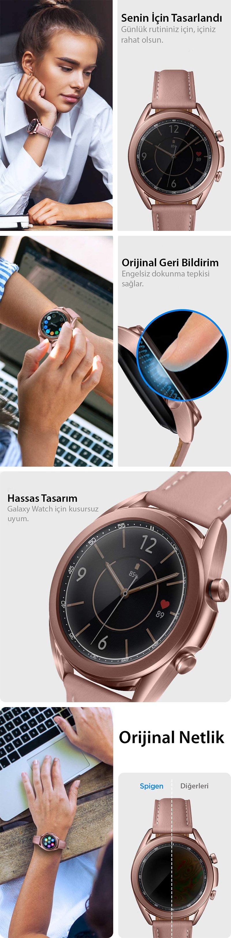Galaxy Watch 3 (41mm) Cam Ekran Koruyucu Kolay Kurulum, Spigen GLAS.tR EZ Fit Slim HD (2 Adet) Malzeme: 9H Temperli Cam ● Zahmetsiz uygulama için yenilikçi, otomatik hizalamalı bir kurulum tepsisi içerir ● 9H sertlik derecesine sahip temperli cam dayanıklılığı ● Kılıf, her Spigen kılıfıyla uyumlu hale getirildi ● Günlük parmak izi direnci için oleofobik kaplama ● Galaxy Watch 3 (41 mm) ile uyumlu