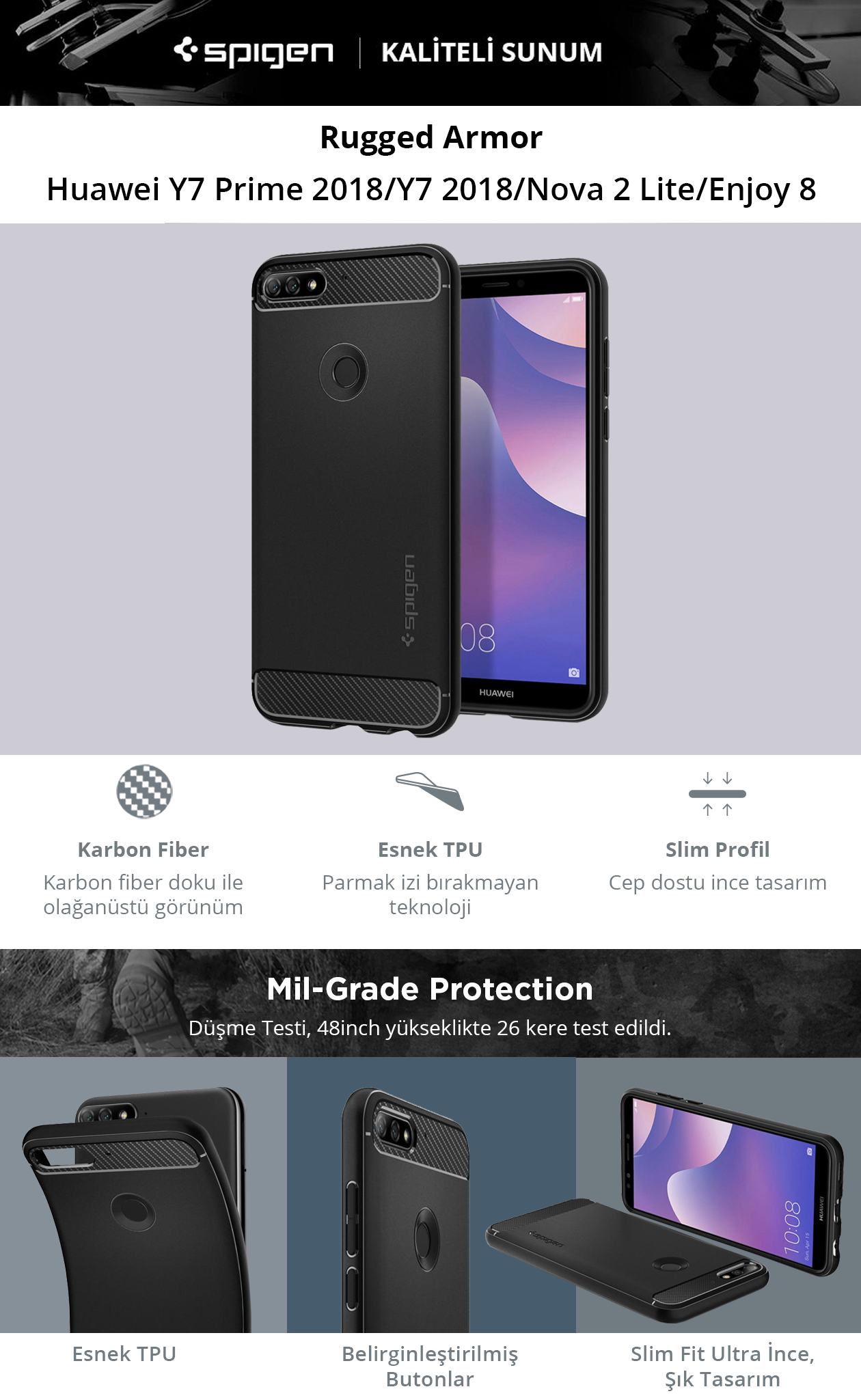 Spigen Rugged Armor™kılıfı Huawei Y7 Prime (2018) için yeni tasarlandı,