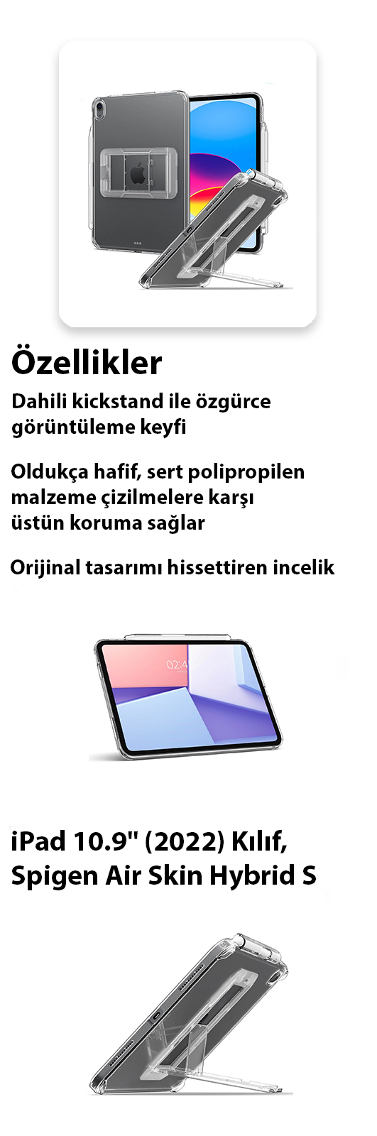 iPad 10.9'' (2022) Kılıf, Spigen Air Skin Hybrid S