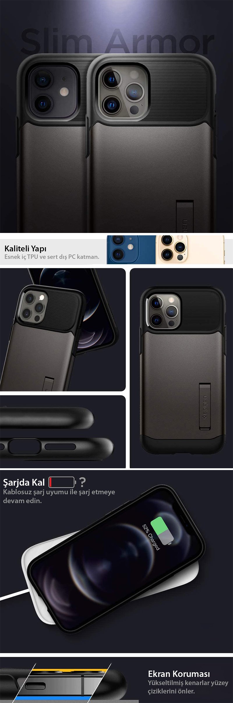 iPhone 12 / iPhone 12 Pro Kılıf, Spigen Slim Armor Black