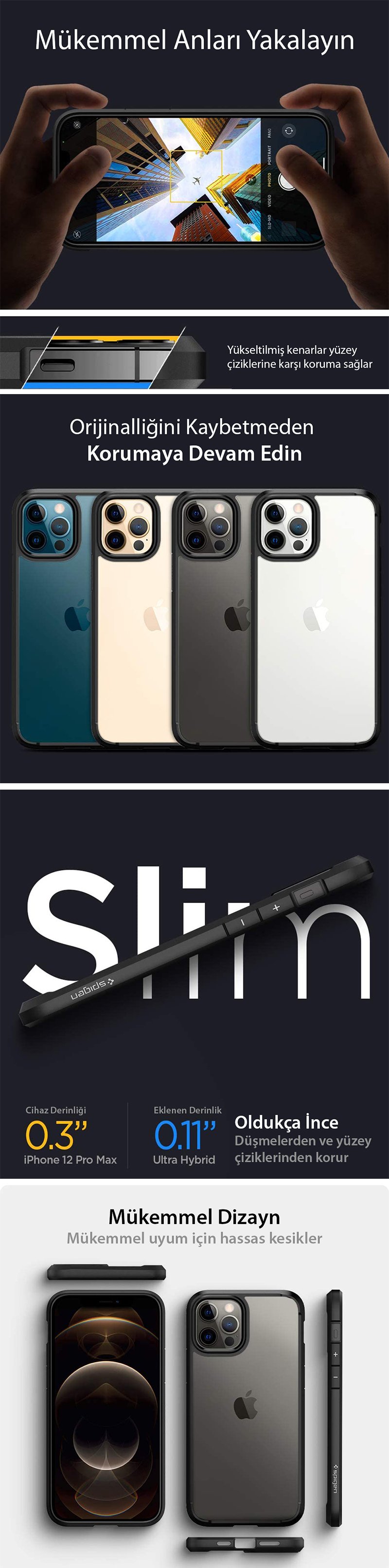 iPhone 12 / iPhone 12 Pro Kılıf, Spigen Ultra Hybrid Malzeme: Termoplastik Poliüretan, Polikarbonat ● Günlük kullanım için ince ve kolay tutuş ● İç ve dış darbe emici yüzey ● Kristal netliğinde göz alıcı görünüm ● Air Cushion Technology® ile Mil-grade sertifikalı ● Çizilme ve darbelere karşı güçlü koruma ● Benzersiz tasarım ve olağanüstü görünüm ● Kablosuz şarj ile uyumlu