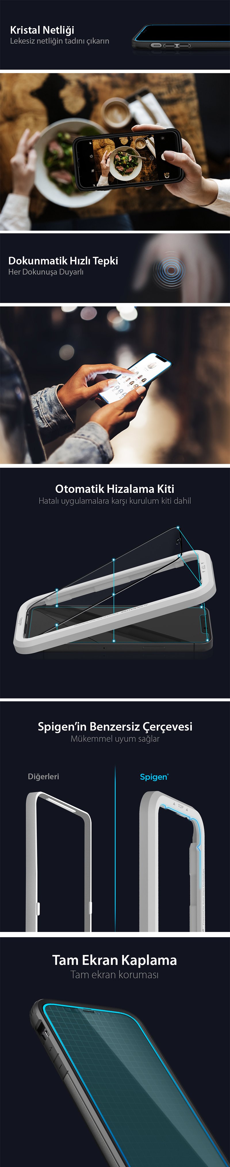Spigen Apple iPhone 12 mini ile Uyumlu Cam Ekran Koruyucu Kolay Kurulum GLAS.tR AlignMaster Full Cover HD (2 Adet) Black - AGL01812