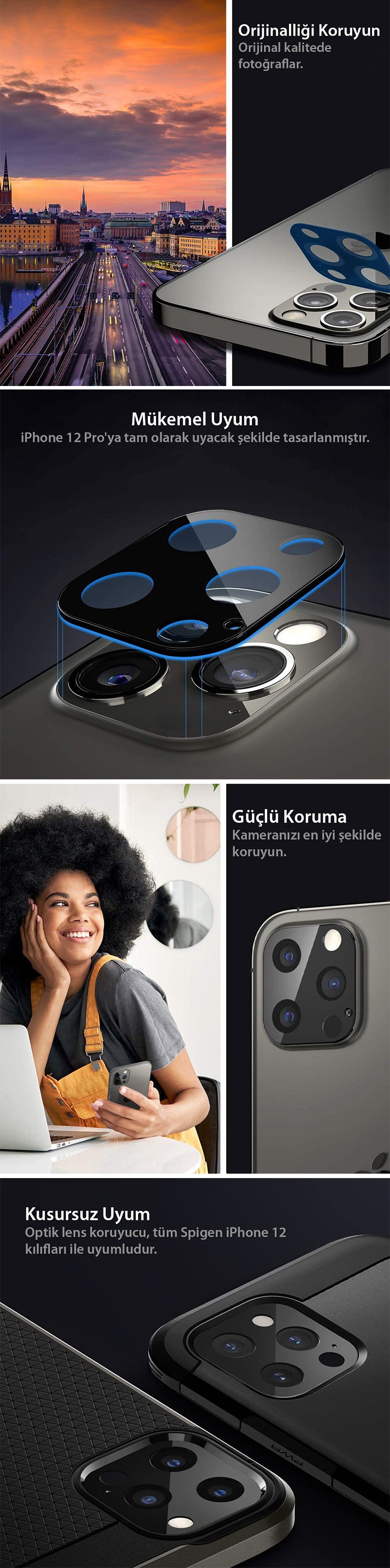 iPhone 12 Pro Max Kamera Lens Cam Ekran Koruyucu, Spigen Glas.tR Optik (2 Adet) ● Çizilmelere karşı premium koruma ● Renk uyumu (benzersiz renk uyumu) ● Çıkıntı yapmayan tasarım ● Parmak izi bırakmayan kaplama
