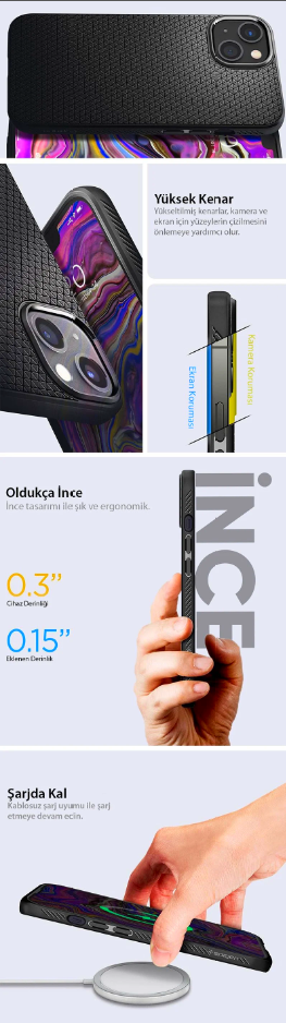 iPhone 13 Kılıf, Spigen Liquid Air ● Apple iPhone 13 için SPIGEN Liquid Air Case, şık tasarımı ince bir çerçeveyle dengeler. ● Esnek tek katman, her darbede düşmeye karşı koruma ve şok emilimi için her köşeye yerleştirilmiş Spigen Patentli Hava Yastığı Teknolojisi ile ince ve cep dostu olacak şekilde tasarlanmıştır. ● Geometrik desenli siyah mat kaplaması, modern bir görünüm ve parmak izine dayanıklılık sağlar. ● Stratejik Olarak Yükseltilmiş kenarlar, düz yüzeylerde ekrana ve kameraya dokunmadan bırakır. ● iPhone 13'ü cilalı ancak koruyucu Liquid Air ile kaplayın. ● Tasarımın her santimi, yeni Apple iPhone 13'ün korumalı ve cep dostu olmasını sağlar. ● Liquid Air'in modern ve forma uygun görünümüyle dikkatleri üzerinize çekin. ● Benzersiz tasarım, olağanüstü görünüm ● Çizilme ve darbelere karşı güçlü koruma ● Kablosuz şarj ile uyumlu ● iPhone 13 için tasarlandı. ● Birinci sınıf mat kaplamalı hafif ince profil ● Günlük yaşamınız için yumuşak ve kavrama dostu ● Çizilmeye karşı dayanıklı PC, telefonu hafif ve cep dostu tutar. ● Kaymaz mat yüzey, her tutuşta parmak izi direnci ve rahatlık sağlar. ● Düştüğünde Şok emilimi için Hava Yastığı Teknolojisi ● Modernliğin bir ipucu için Geometrik desenli yeni görünüm ● Yanlarda Geliştirilmiş Kavrama ● Kılıf Açıkken Kablosuz Şarj ile uyumlu ● Dayanıklı esneklik için birinci sınıf TPU malzeme ● Forma takılan ve cep dostu ● Sağlam geri bildirim ve Kolay Basma için TACTILE düğmeleri"