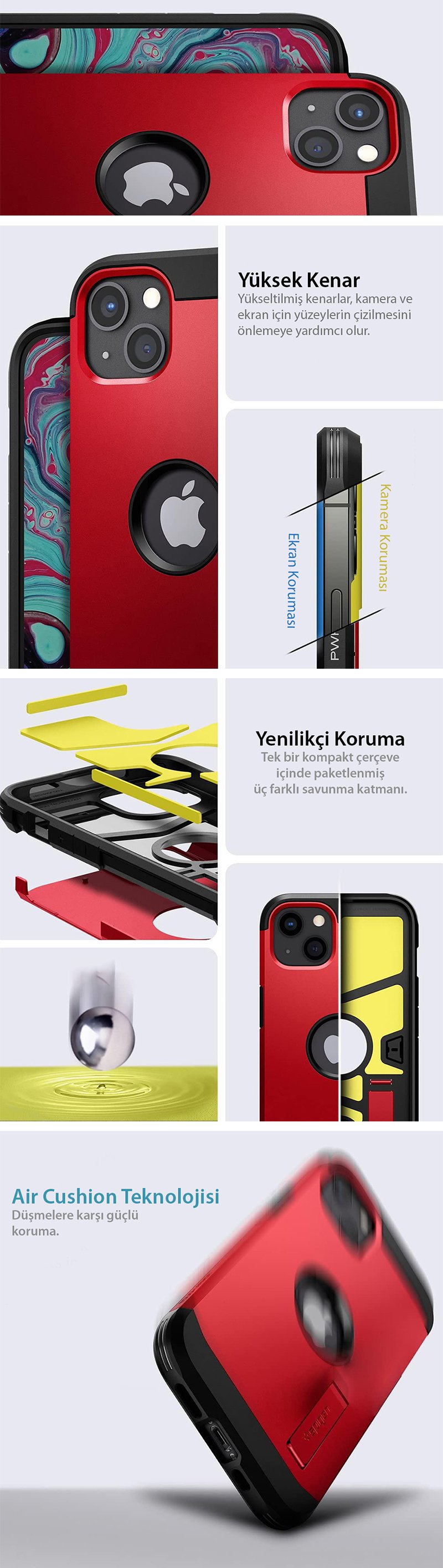 iPhone 13 Mini Kılıf, Spigen Tough Armor Military Grade ● Benzersiz tasarım, olağanüstü görünüm ● Çizilme ve darbelere karşı güçlü koruma ● Kablosuz şarj ile uyumlu ● iPhone 13 Mini için tasarlandı. ● iPhone 13 mini Kılıf iPhone 13 mini (2021) ile uyumlu ● Ekstra şok emilimi için yeni aşırı darbe köpüğü ● Esnek iç ve dayanıklı dış yüzeye sahip çift katmanlı gövde ● Air Cushion Technology® ile Mil dereceli sertifikalı ● Ekstra bir şok direnci katmanı için tamamen yeni köpük teknolojisi ● Düşmelere ve çizilmelere karşı ikili koruma için TPU ve Polikarbonat kombinasyonu ● Ekranı ve kamerayı korumak için yükseltilmiş dudaklı güçlendirilmiş kickstand ● Şok önleyici koruma için sertifikalı [MIL-STD 810G-516.6] koruma ve Hava Yastığı Teknolojisi