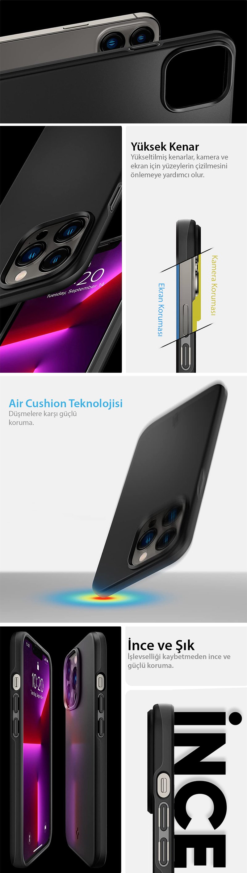 iPhone 13 Pro Kılıf, Spigen Silicone Fit ● Benzersiz tasarım, olağanüstü görünüm ● Çizilme ve darbelere karşı güçlü koruma ● Kablosuz şarj ile uyumlu ● iPhone 13 Pro için tasarlandı. ● Günlük yaşamınız için yumuşak ve kavrama dostu ● Dokunsal geri bildirim ve ek ayrıntılar içeren belirgin düğmeler ● Air Cushion Technology® ile mil sınıfı sertifikalı düşme koruması ● Ekstra şok emilimi için yeni aşırı darbe köpüğü ● Esnek iç ve dayanıklı dış yüzeye sahip çift katmanlı gövde ● Çizilmeye karşı dayanıklı PC, telefonu hafif ve cep dostu tutar. ● Telefonunuzun yeni gibi görünmesini sağlayan akıllı bir tasarım