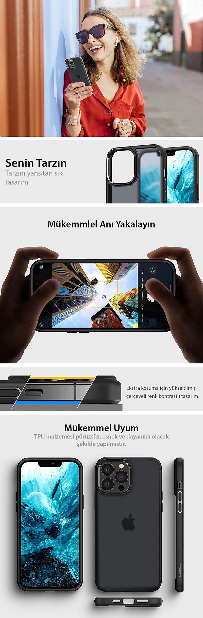 Spigen Apple iPhone 13 Pro ile Uyumlu Kılıf Ultra Matte Frost Black - ACS03621