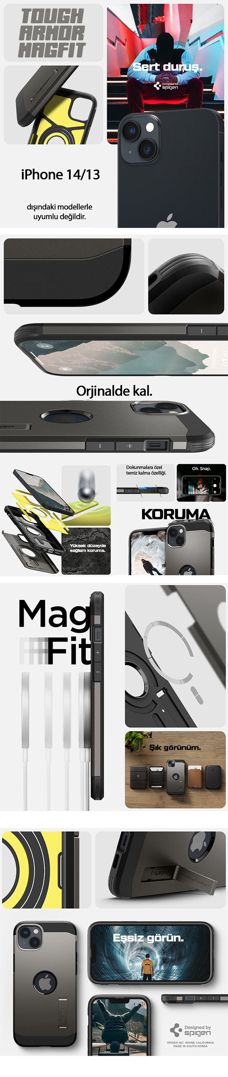 iPhone 14 / iPhone 13 Kılıf, Spigen Tough Armor Magfit (Magsafe Uyumlu)
