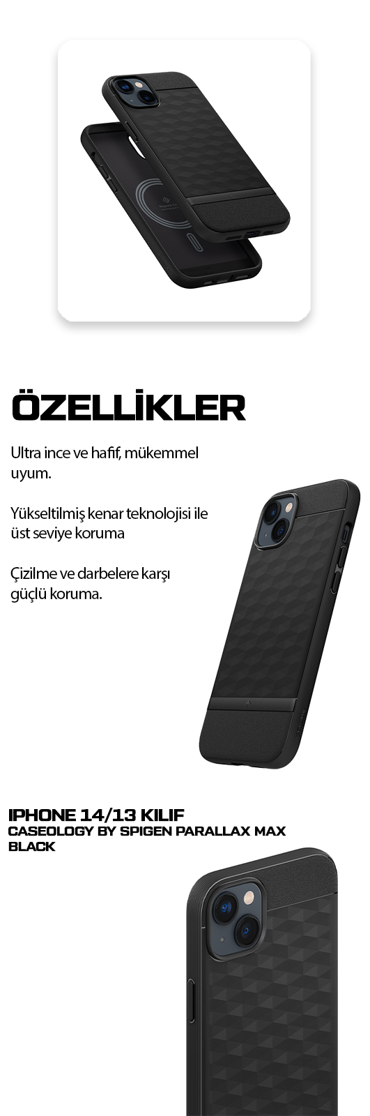 Spigen Caseology Apple iPhone 14 / 13 ile Uyumlu Kılıf Parallax Mag MagSafe özellikli Matte Black - ACS05074