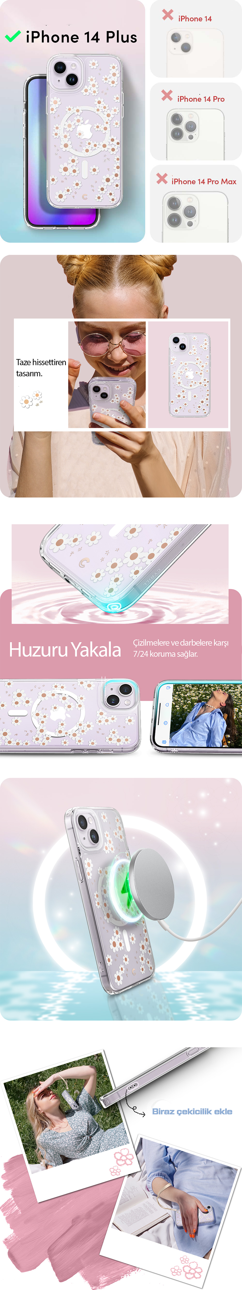 Spigen Ciel by CYRILL Apple iPhone 14 Plus ile Uyumlu Kılıf Cecile Mag MagSafe özellikli White Daisy - ACS04940