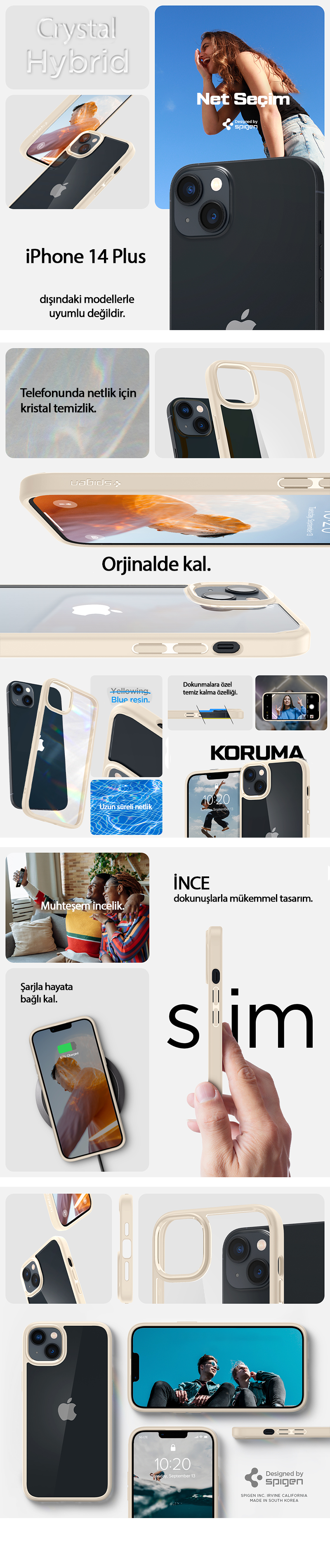 iPhone 14 Plus Kılıf, Spigen Crystal Hybrid Sand Beige