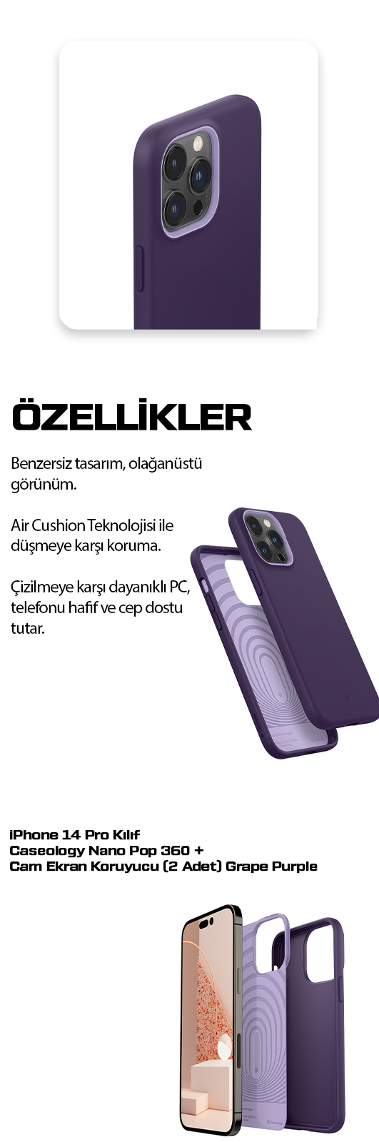 Spigen Caseology iPhone 14 Pro Kılıf Nano Pop 360 + Cam Ekran Koruyucu (2 Adet) Grape Purple