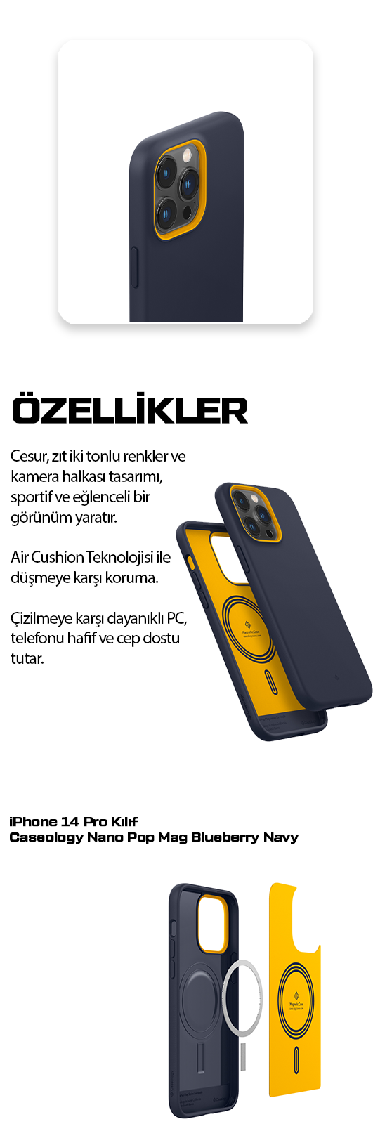 Spigen Caseology Apple iPhone 14 Pro ile Uyumlu Kılıf Nano Pop Mag MagSafe özellikli Blueberry Navy - ACS05013