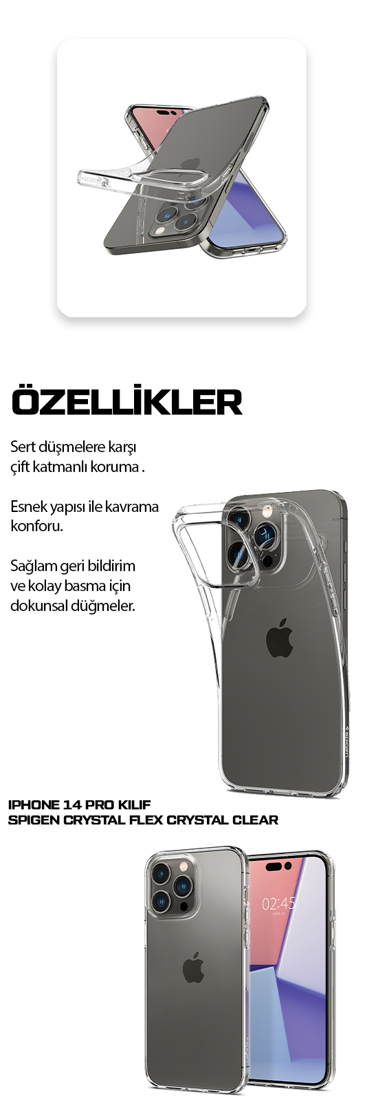 iPhone 14 Pro Kılıf, Spigen Crystal Flex