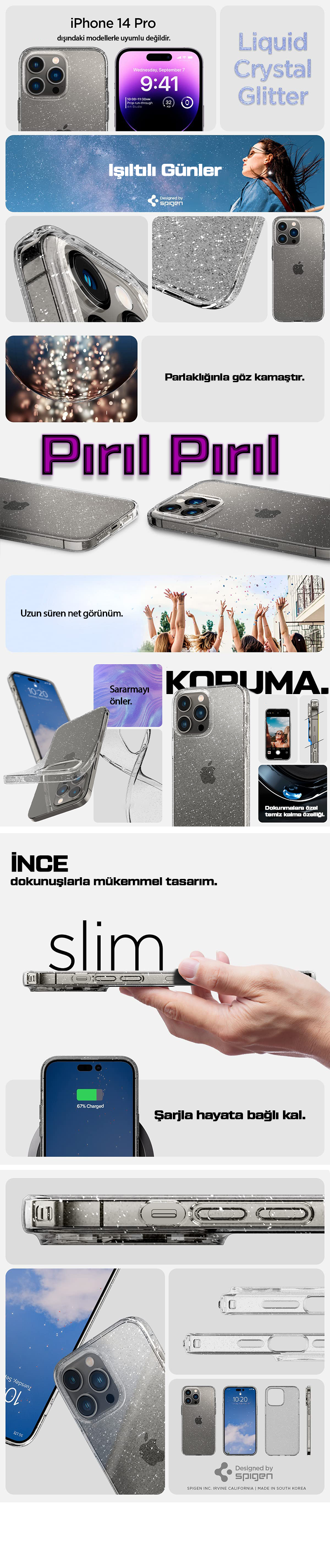 iPhone 14 Pro Kılıf, Spigen Liquid Crystal Glitter
