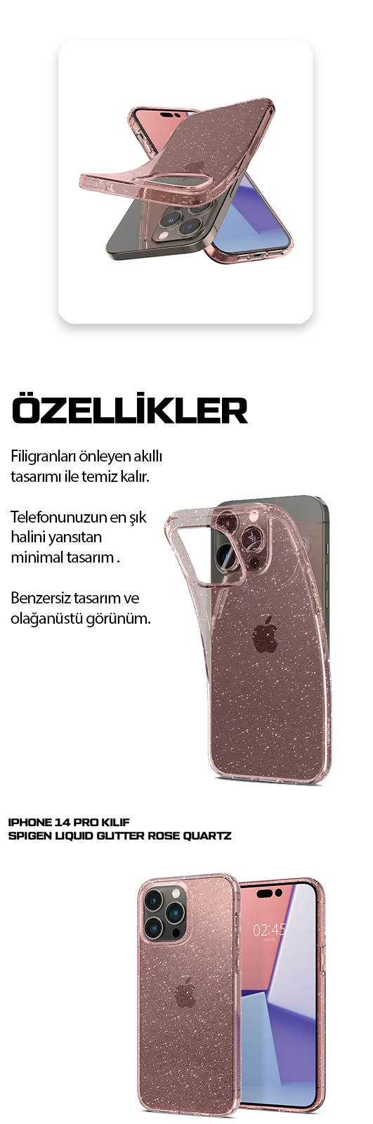 iPhone 14 Pro Kılıf, Spigen Liquid Crystal Glitter