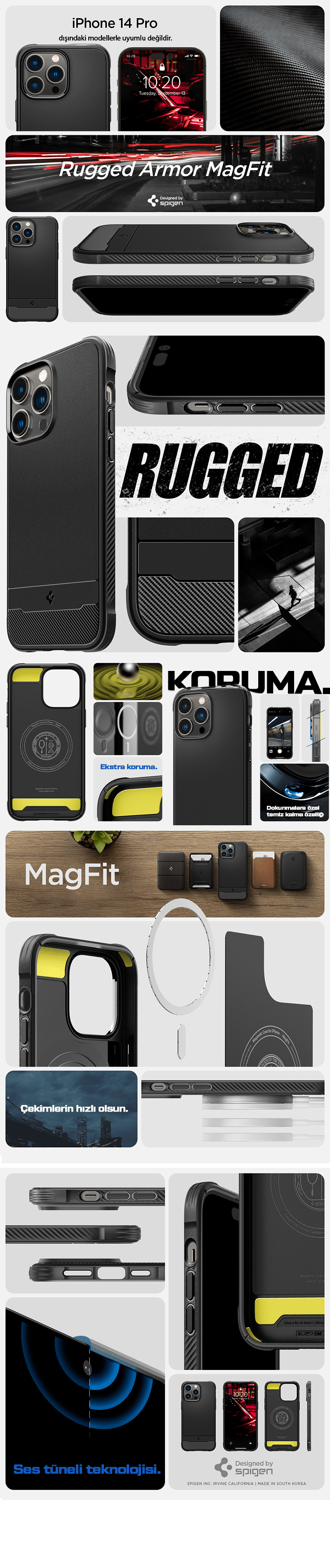 iPhone 14 Pro Kılıf, Spigen Rugged Armor MagFit (MagSafe Uyumlu Matte Black