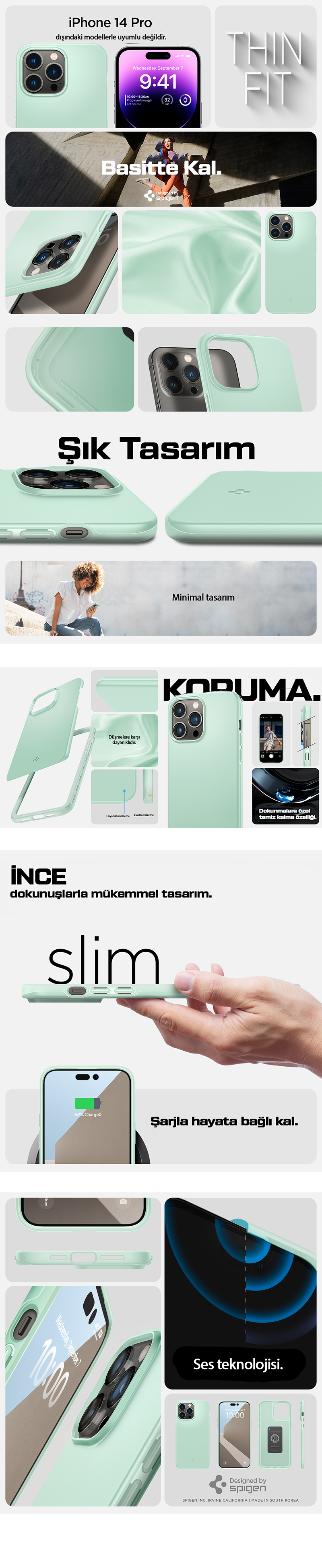 iPhone 14 Pro Kılıf, Spigen Thin Fit Apple Mint