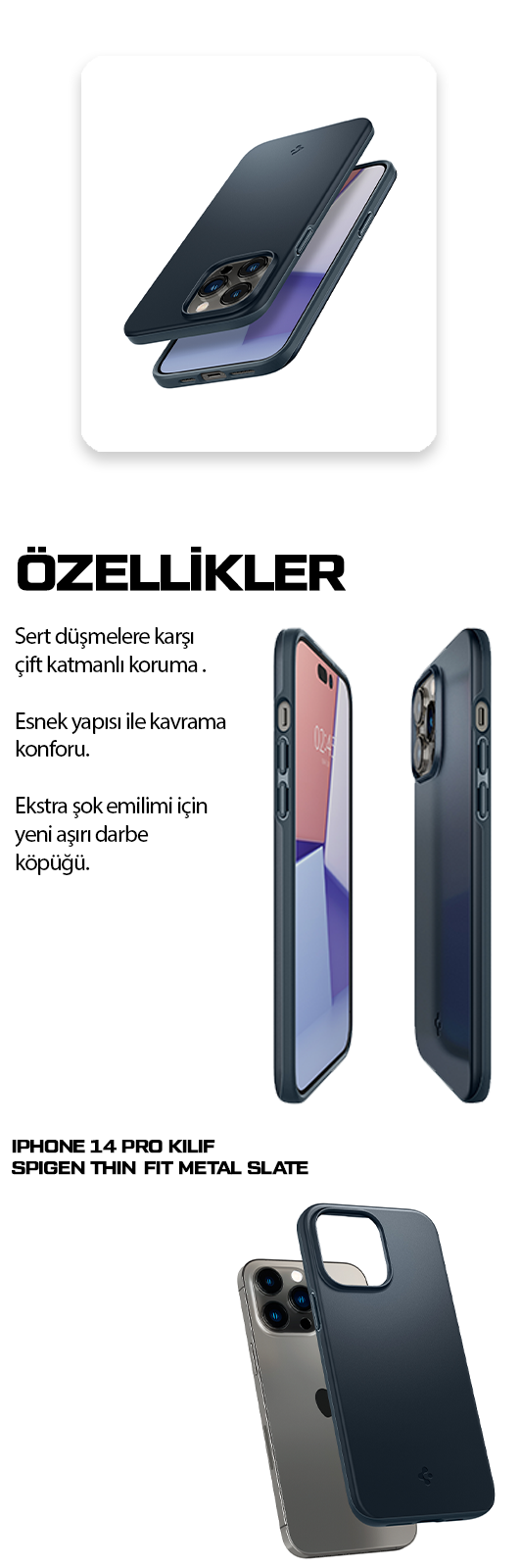 iPhone 14 Pro Kılıf, Spigen Thin Fit Metal Slate