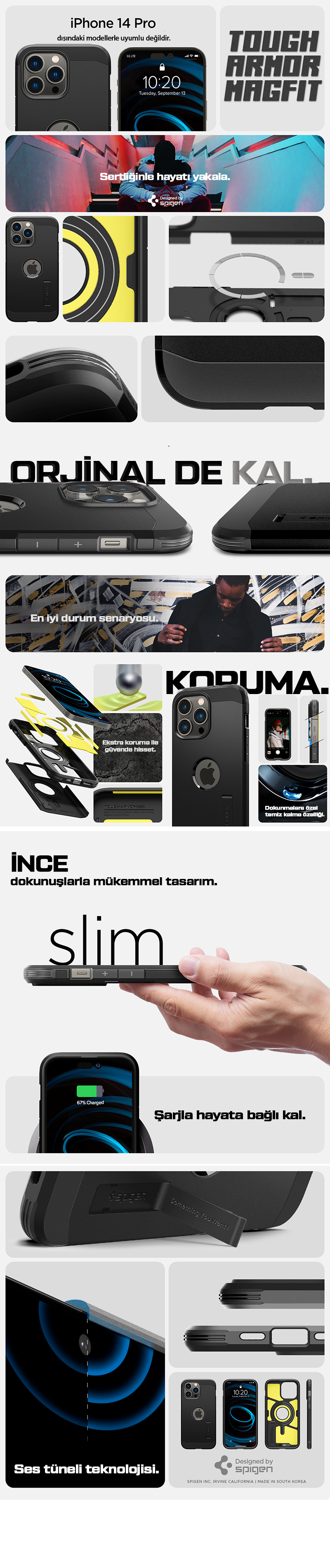 iPhone 14 Pro Kılıf, Spigen Tough Armor MagFit (MagSafe Uyumlu)