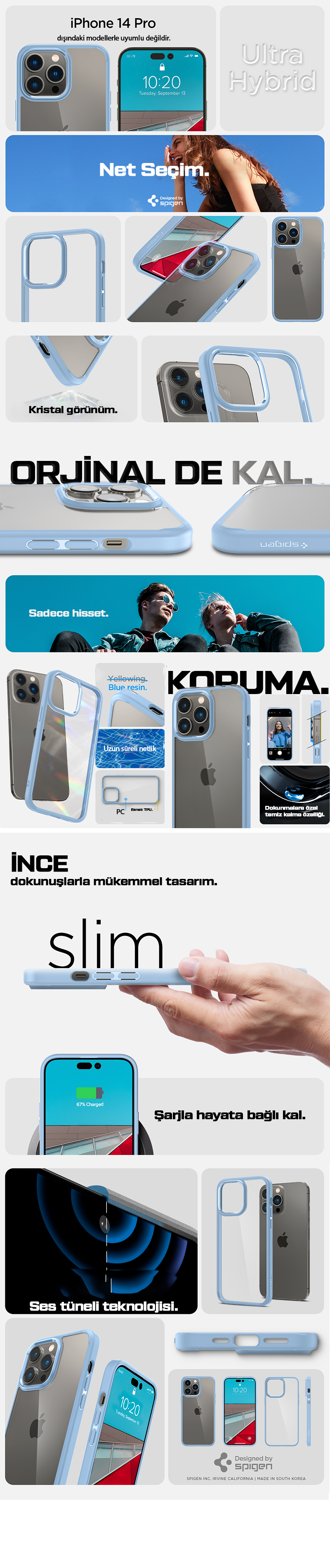 iPhone 14 Pro Kılıf, Spigen Ultra Hybrid Sierra Blue