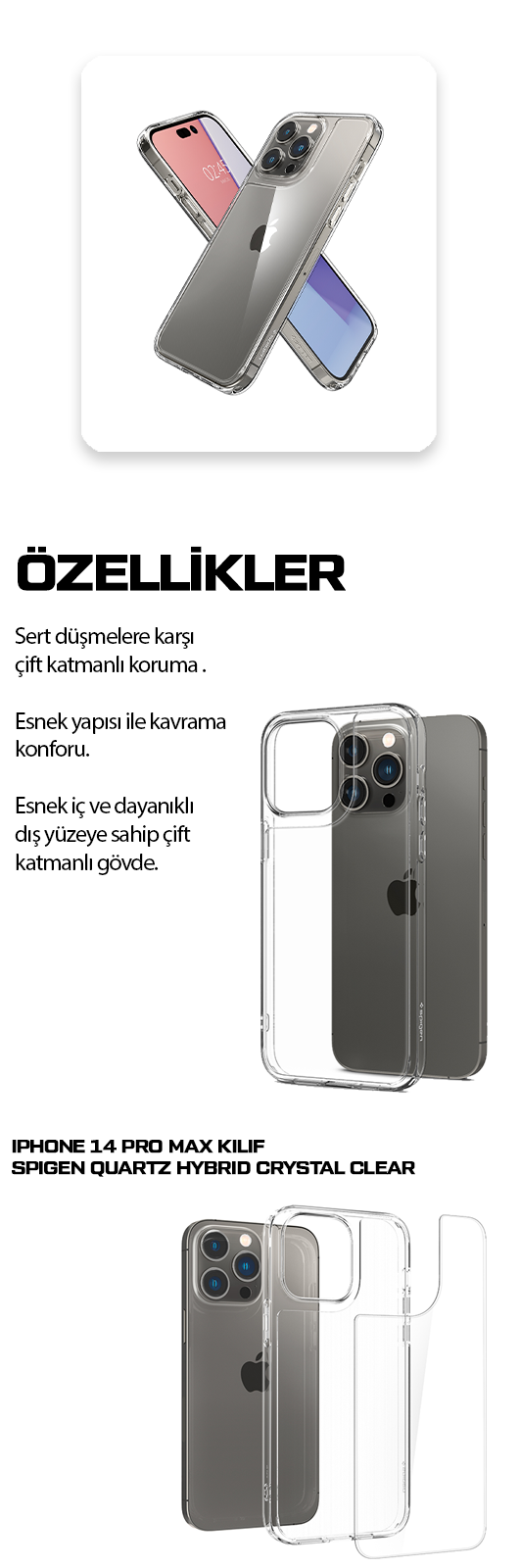 iPhone 14 Pro Max Kılıf, Spigen Quartz Hybrid Crystal Clear