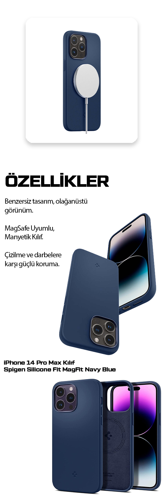 Spigen Apple iPhone 14 Pro Max ile Uyumlu Kılıf Silicone Fit (Silikon) MagFit MagSafe özellikli Navy Blue - ACS04847