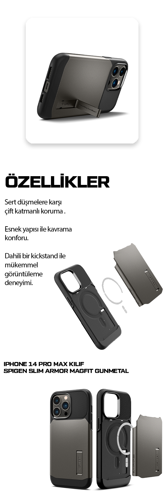 iPhone 14 Pro Max Kılıf, Spigen Slim Armor MagFit (MagSafe Uyumlu) Gunmetal