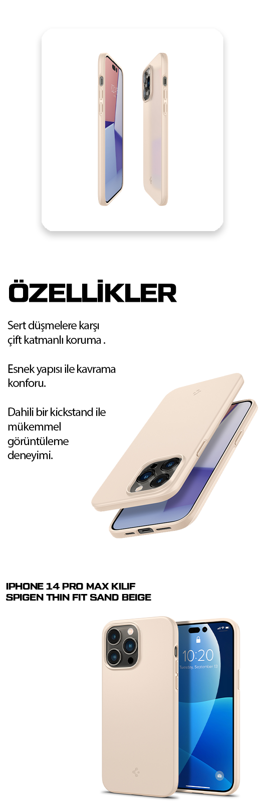 iPhone 14 Pro Max Kılıf, Spigen Thin Fit Sand Beige