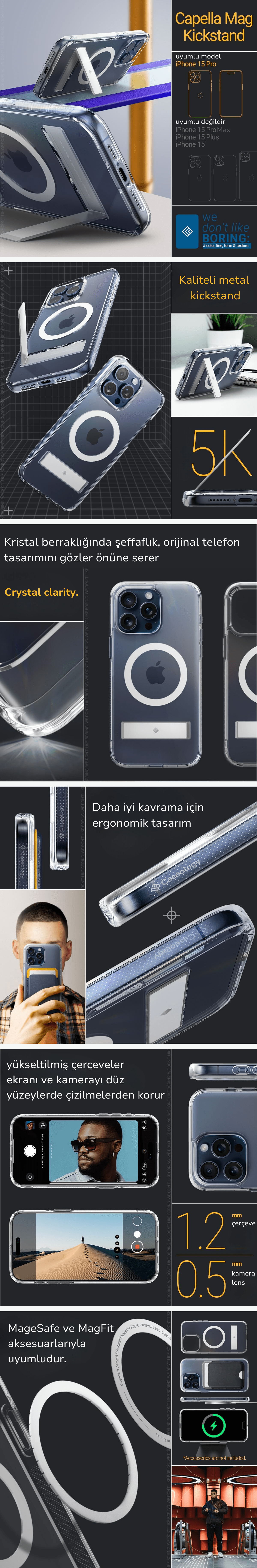 Spigen Caseology iPhone 15 Pro Kılıf Capella Mag MagSafe özellikli Kickstand