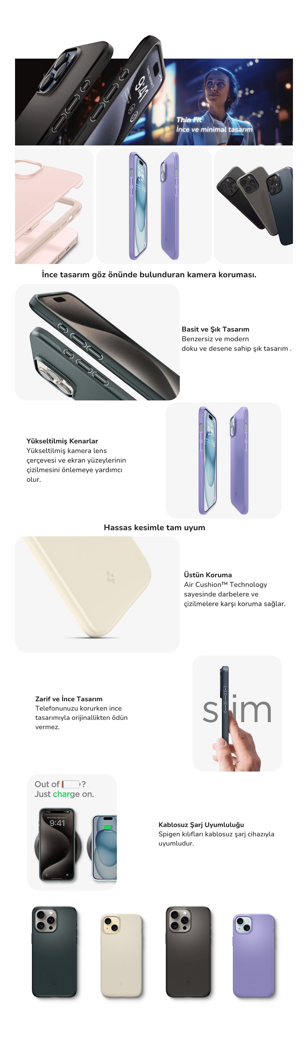 iPhone 15 Pro Max Kılıf, Spigen Thin Fit Metal Slate