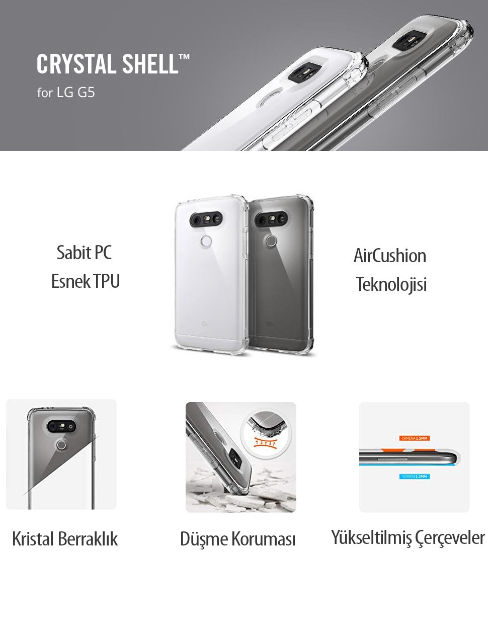 LG G5 ihazınızı Spigen’in Crystal Shell™ kılıfıyla koruyun.