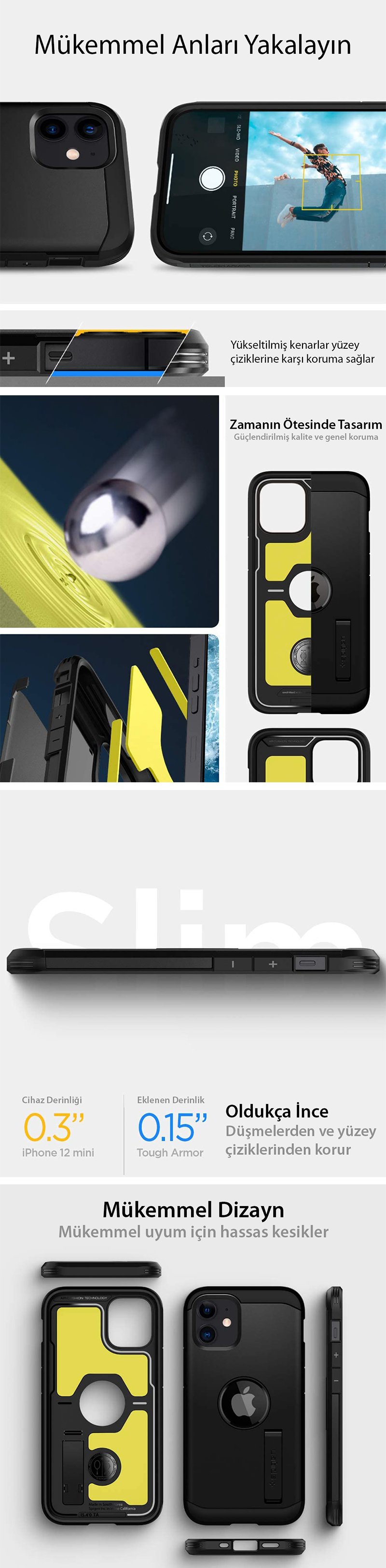 iPhone 12 Mini Kılıf, Spigen Tough Armor Mag (MagSafe Uyumlu)Malzeme: Termoplastik Poliüretan - Polikarbonat
