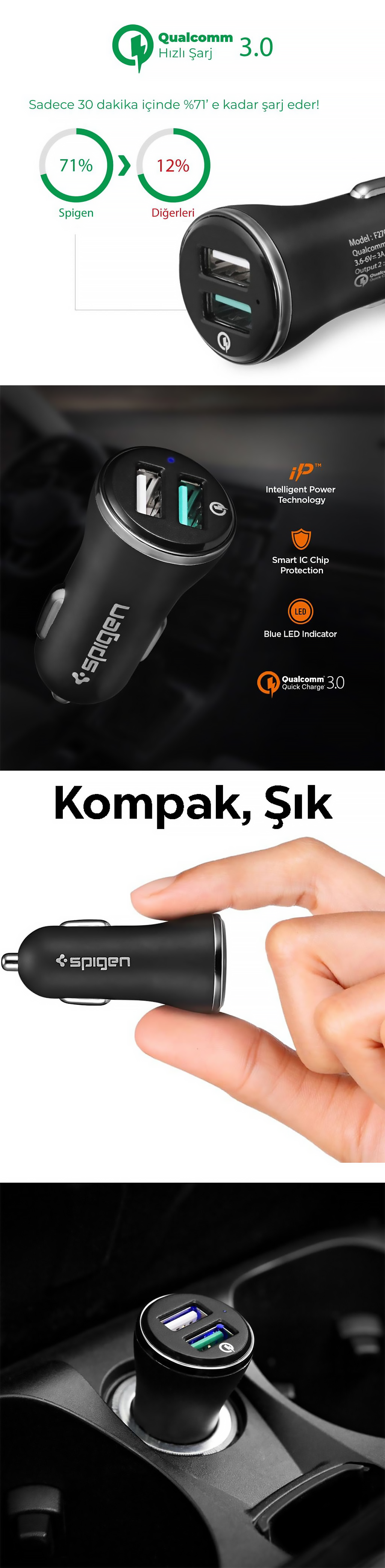 "Spigen Essential 30W Hızlı Araç Şarjı Çift Giriş USB Qualcomm 3.0 F27QC F27QC ile, Apple iPhone 15 / 14 / 13 / 12, Samsung Galaxy S24 / S23 / S22 serilerini yoldayken hızlı ve güvenli bir şekilde şarj edebilirsiniz. ● Aracınız için şık ve ergonomik tasarım. ● Çift şarj özelliği (Aynı anda iki cihaza kadar şarj eder.) ● Uyumlu cihazlarda Qualcomm Quick Charge 3.0 ● Aynı anda iki cihazı rahatlıkla şarj eder ● Ergonomik tasarım, herhangi bir otomobilin iç kısmına tam oturur ● Akıllı IC çip koruması ile kısa devre sorunlarını ortadan kaldırır ● Aşırı ısınma ve aşırı şarjı önlemek için ControlHeat Teknolojisi'ne sahip akıllı devre özelliğine sahiptir ● Apple iPhone 15 / 14 / 13 / 12 / ve Samsung Galaxy S24 / S23 / S23 Serileri ile sorunsuz şarj deneyimi ● Evrensel Uyumluluk: iPhone 15 / 15 Plus / 15 Pro / 15 Pro Max / 14 / 14 Plus / 14 Pro / 14 Pro Max / 13 / 13 Pro / 13 Pro Max / 13 Mini / 12 / 12 Pro / 12 Pro Max / 12 Mini / 11 / 11 Pro / 11 Pro Max / X / XS / XR / XS Max / SE 2020 / 8 / 8 Plus / Pixel 5a / 5 / 4 / 4xl / Galaxy S24 / S24 Plus / S24 Ultra / S23 / S23 Plus / S23 Ultra / S22 / S22 Plus / S22 Ultra / S21FE / S21 / S21 Ultra / S21 Plus / S20 / S20 Ultra / S20 Plus / S20 FE / Note 20 / Note 10 / S10 / S9 / S8 / Z Fold 3 / Z Flip 3 / Z Fold 2 / Z Flip 5G / Z Flip / Fold 5G"