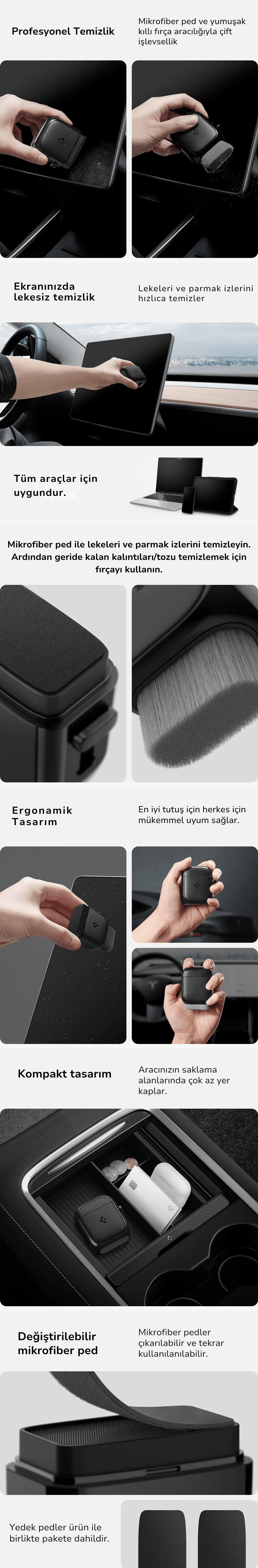 Spigen Araç içi Temizlik Fırçası (Tüm Araçlar ile Uyumlu) CC90 Black - ACP05755